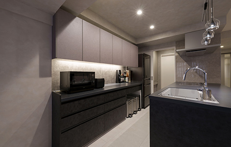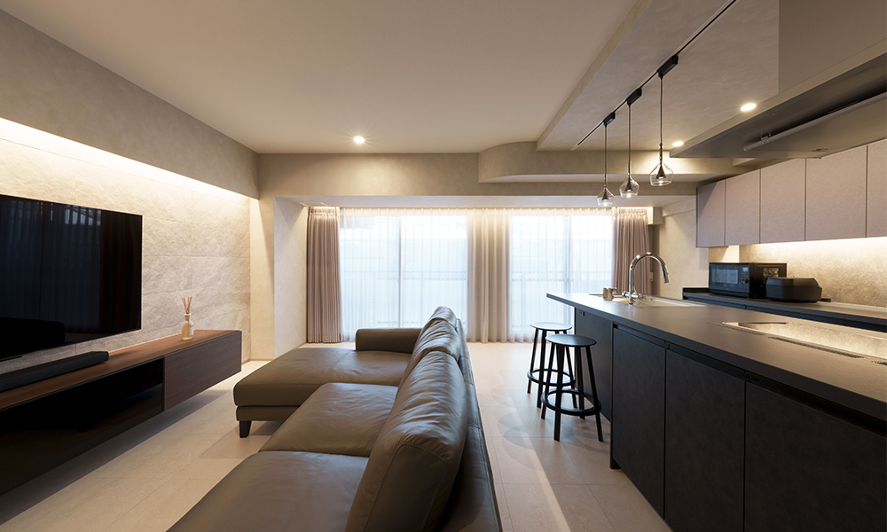 - オープンキッチンが主役のホテルライクなLDK。暮らしの変化にも対応できる間取りに