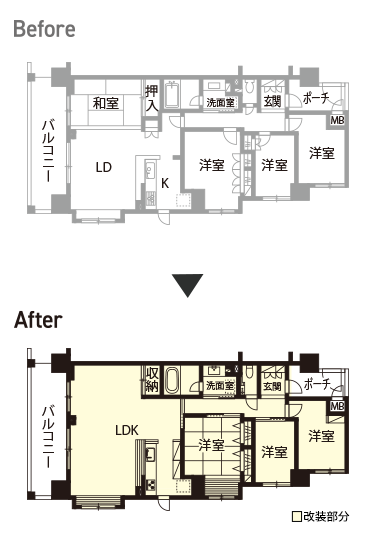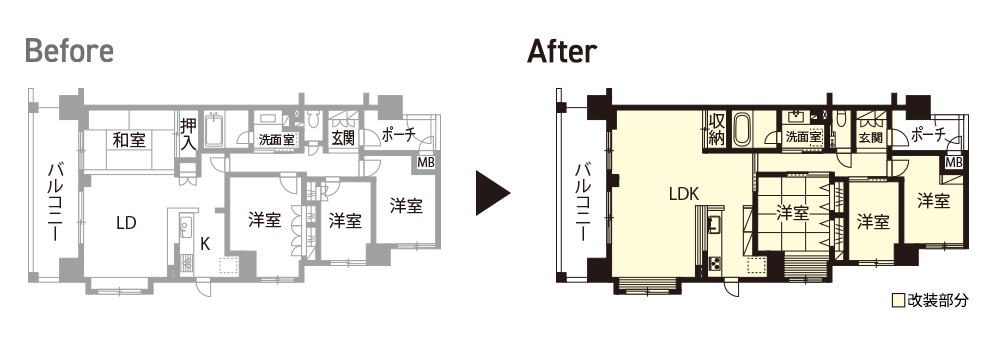 築20年のマンションにお住まいのSさま。ライフスタイルの変化をきっかけに、間取りやデザインを一新したいとご相談をいただきました。